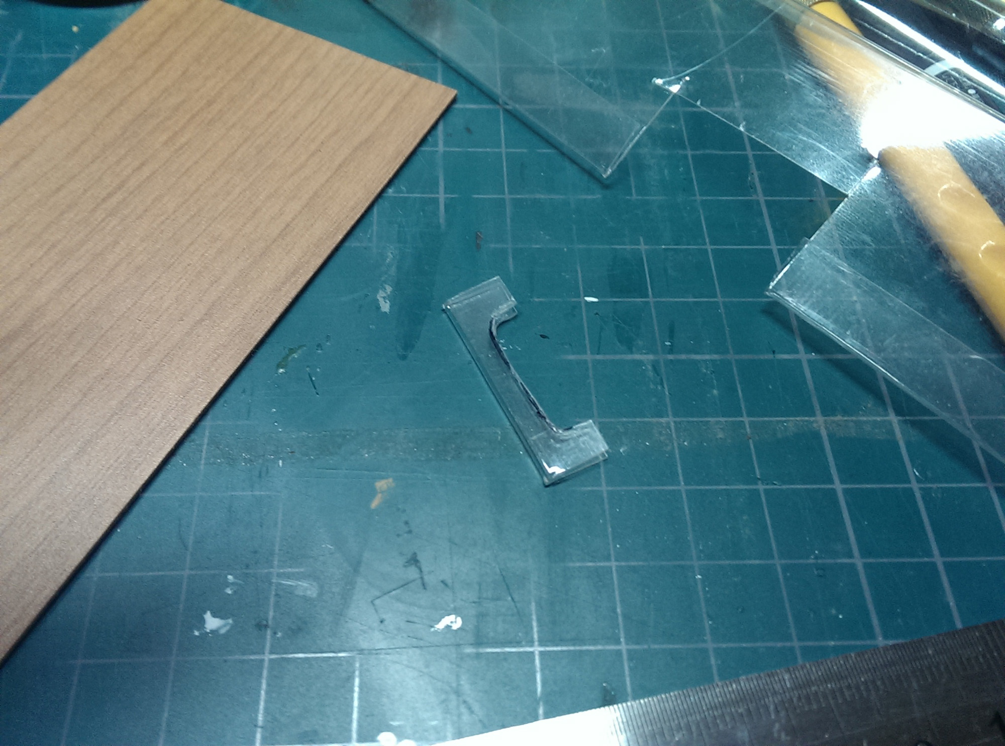 ただ、やはり模型用のプラ板と違って硬いですね。柔軟性が無いというか、簡単に割れて砕けます。