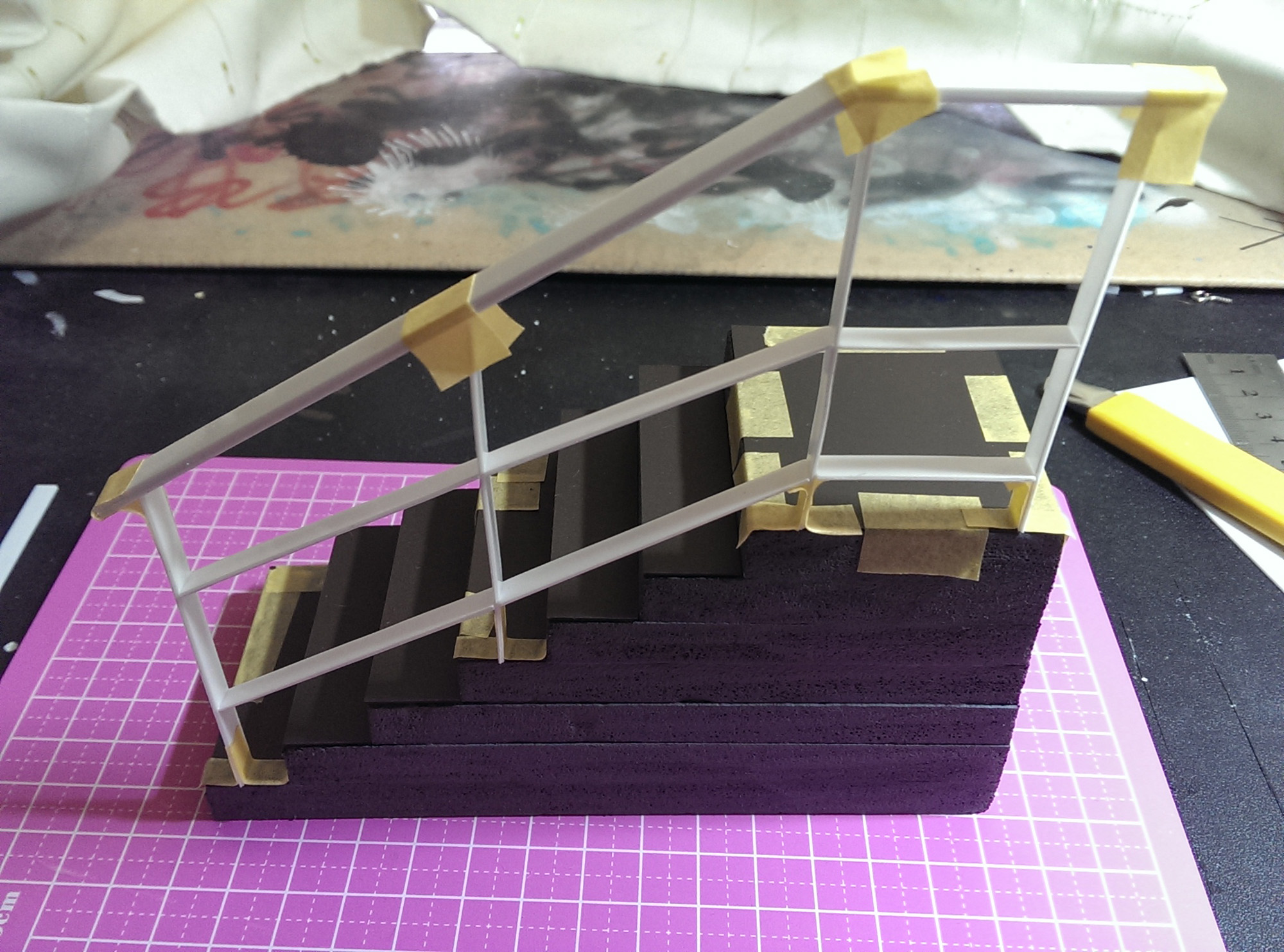 階段も以前何かに使ったスチレンボードの端材です。