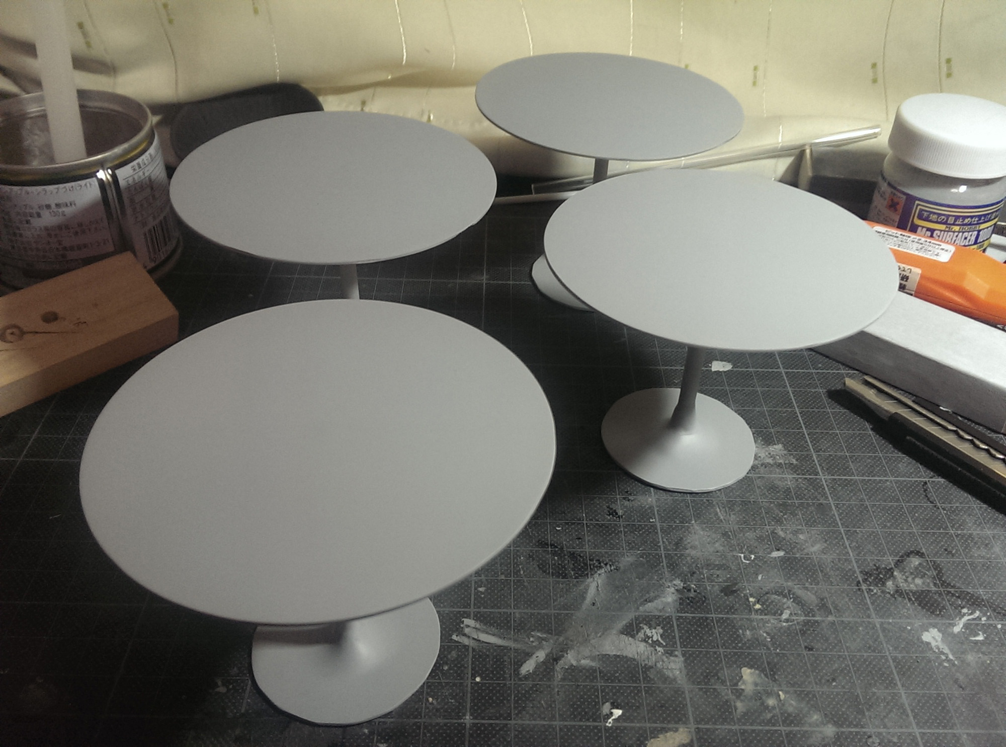 そんな状態もあってか、更にやる気が出なかった原因は『放置してる間にスチレンボードの壁や床が歪んだ』『作らなければならない小物が多すぎた』という所。