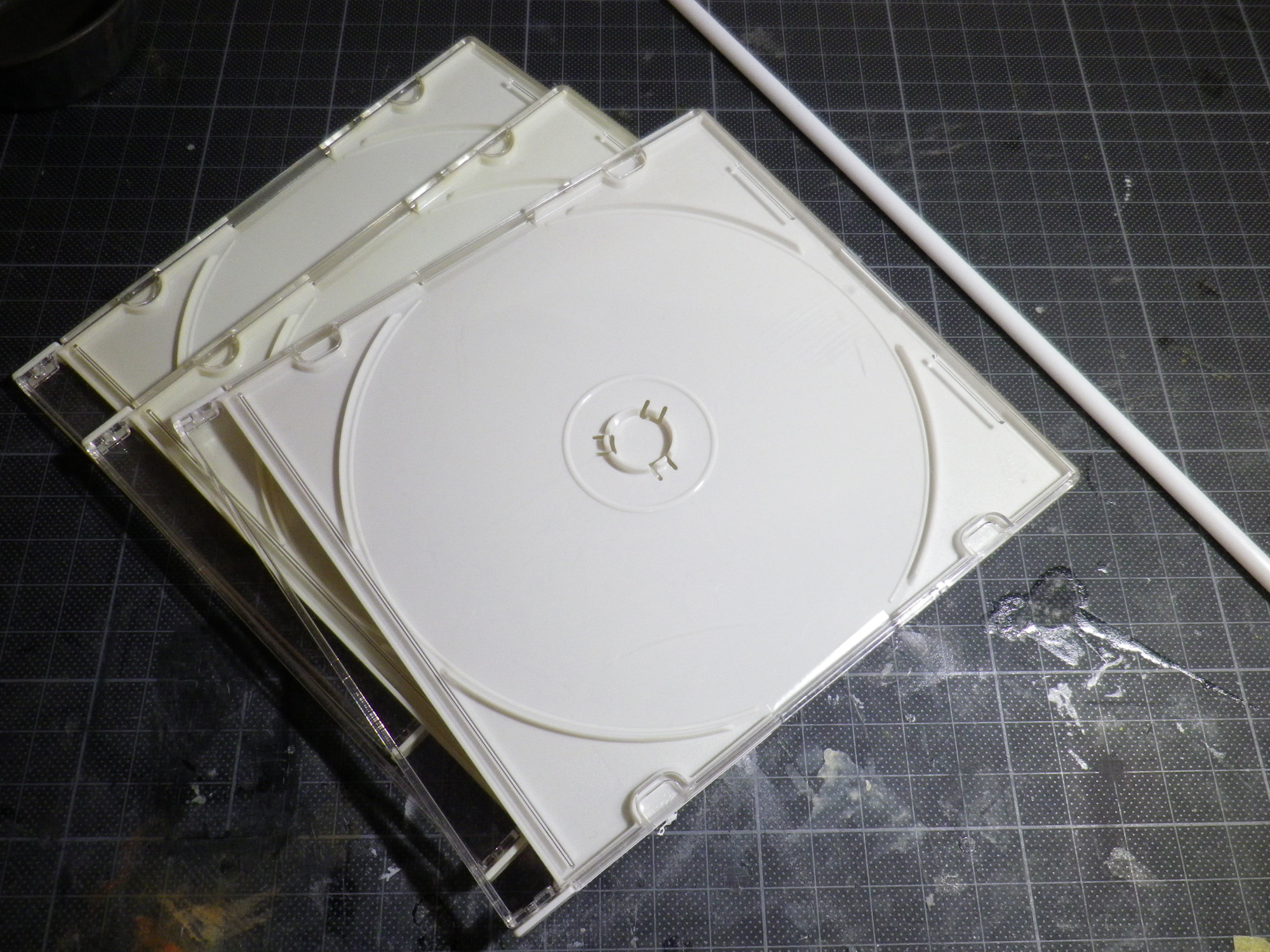 CDケースもプラスチックだし使えないかなーと試してみたらそれなりに使えました。普通にセメントでも溶けますし問題なかったように思えます。
