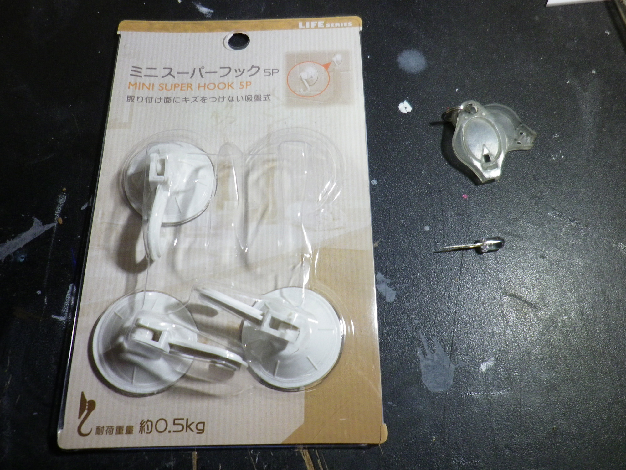 ドアの取手も同じくパッケージのブリスター。製作コスト削減という名のリサイクルです。